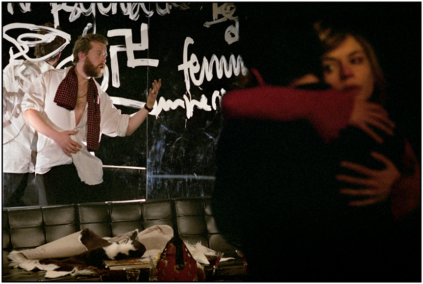 La Veillée traite de l’incommensurable distance qui sépare et rapproche deux frères l’un de l’autre, les éloigne de leurs épouses respectives. Lars Norén brosse le portrait de deux hommes empêtrés dans les liens filiaux, vivant tous deux une incapacité physique, quand elle n’est pas morale, à garder épouse et enfants auprès d’eux. En somme, la totale déliquescence de deux noyaux familiaux qui n’ont jamais réellement constitué une famille. L’impossible union, l’éternel combat entre ce qui devrait être et ce qui est, l’incapacité notable à créer, étouffés par le poids d’une histoire familiale pesante. Celui qui passe au scalpel les sentiments de la nature humaine sonde extrémités et limites, se joue des névroses dans une relecture trash et outrancière de Freud et concocte des dialogues cruels et incongrus à la mesure de son prestigieux compatriote Ingmar Bergman, chez qui le drame survient progressivement, alors qu’ici, son action demeure de l’ordre de l’épidermique, de l’insaisissable, ruinant tout sur son passage.